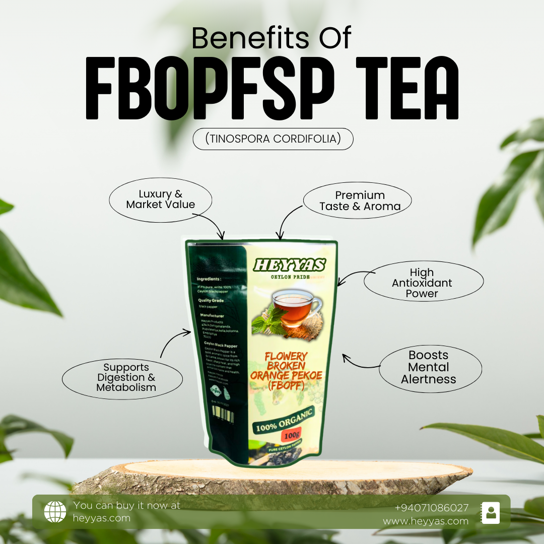 FBOPFSP is considered a **special grade tea** — elegant, smooth, and aromatic — crafted for tea connoisseurs who appreciate the finest in Ceylon black tea.